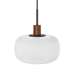 Why settle for pot lights when you can have a thoughtfully curated pendant hanging from your ceiling? With its sleek, solid wood base and statement-sized glass shade, Kipp injects a little fancy — dare we say, old money-style — into any dimly-lit room.