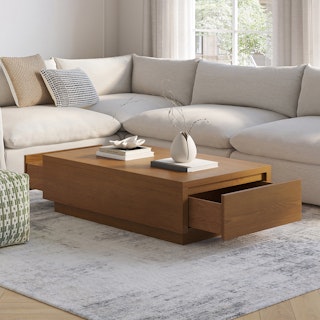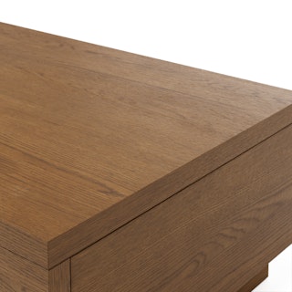The strong, silent type. The Leif Storage Coffee Table embodies the classic tropes we associate with Scandinavian good looks: good-looking, sturdy, impeccable posture. Set atop an elegant plinth base, with soft-close drawers on either side, you can rest assured that your Leif not only looks gorgeous, its also soft-spoken and sensitive to your (safety) needs.