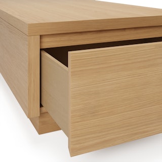 The strong, silent type. The Leif Storage Coffee Table embodies the classic tropes we associate with Scandinavian good looks: good-looking, sturdy, impeccable posture. Set atop an elegant plinth base, with soft-close drawers on either side, you can rest assured that your Leif not only looks gorgeous, its also soft-spoken and sensitive to your (safety) needs.