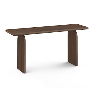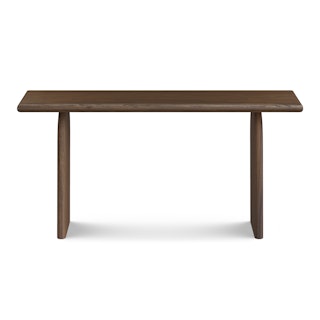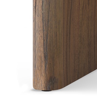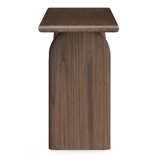 Welcome, Lloyd, the gentle giant. With a solid wood construction throughout, Lloyd's rustic charm comes from its wire-brushed finish, accentuating the natural wood grain and giving the piece a highly texturized look and feel. Its sizeable top rests boldly atop two arched plinth legs, offering a striking contrast against its soft, rounded edges. Lloyd is visually bold but soft at heart.