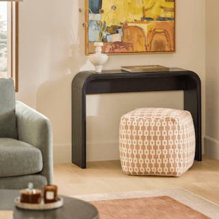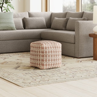 Don't be a square — be a cube. The Mia pouf is six equal sides of handwoven goodness. A repeating dot-and-dash pattern is playful but subtle, making this a great accent for a living space that loves fun but doesn't want to compete for attention. Stuffed with polyurethane beads, the Mia is a great alternative to an ottoman, or simply a charming little tuffet to perch on.