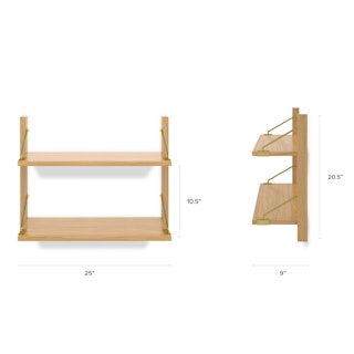 Functional and fashionable? Can you have both? The Stark collection says you can. Featuring two shelves supported by elegant golden brackets and solid wood supports, each shelf can hold an impressive 44 lbs. With a design that fosters limitless expansion, the Stark collection allows you to tailor your storage precisely to your needs.