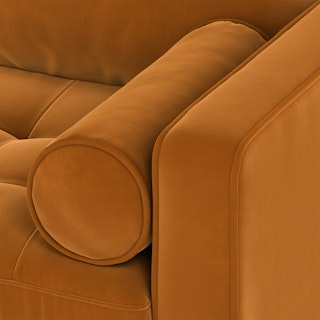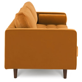 Maximum mid-century appeal. With its plush back cushions, bolsters made for regal lounging, and tufted bench seat, this velvet version of our Sven Sofa puts your calm, cool, creative style on display. This piece is poised on a wooden block frame and upholstered in soft brushed velvet. Pair this piece with a good book: the perfect combo for unwinding after a long day.