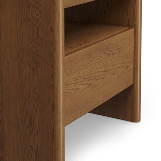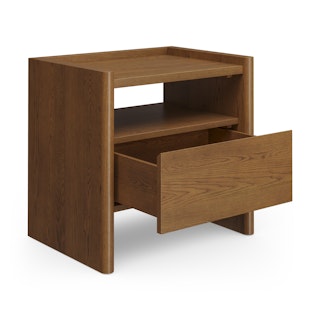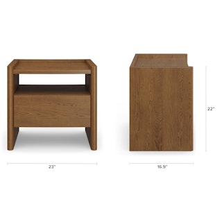 The Torme is characterized by simple lines and thoughtful details. Its large and deep drawer maximizes storage space without compromising on style, and its softly rounded edges are subtle but impactful. The Torme nightstand is a functional, beautiful addition to any space (but especially moody Norwegian studies).