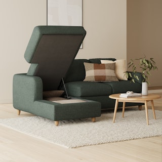Super impressed with the fabric, fill and overall construction and design of this couch. The ottoman storage is so convenient, as well.
