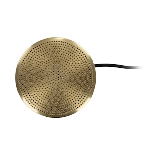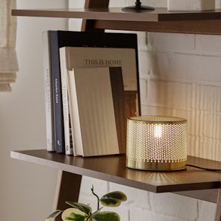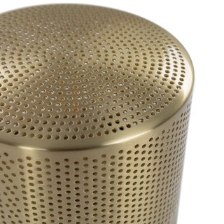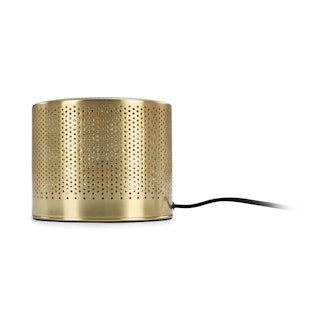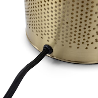 The Perforate lamp looks great sitting atop a side table, or hung as a sconce on the wall. The punched-metal shade casts twinkly, subtle lights across your room. Extra shine provided by the metal finish, and neatly tied together with a fabric-wrapped cord.